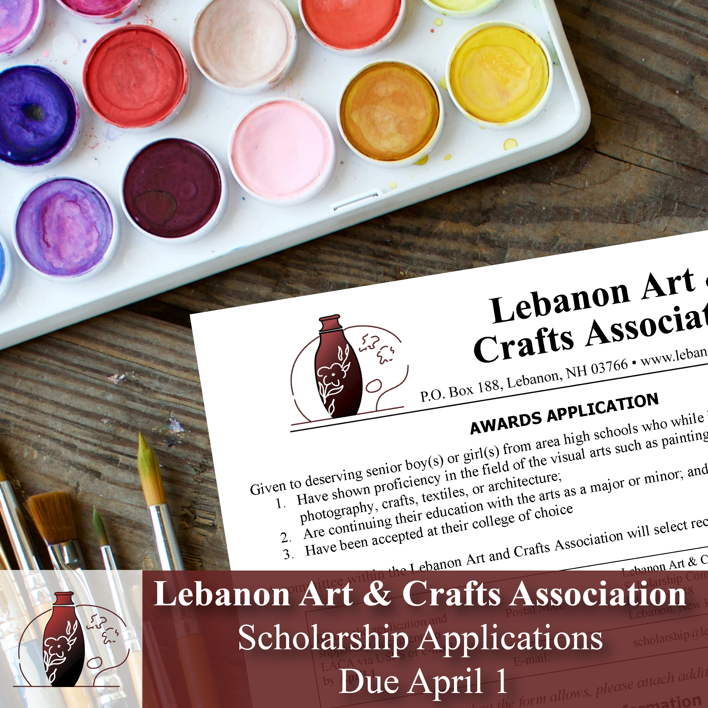 If so, we are seeking applicants for our annual Lebanon Art and Crafts Association scholarship. Applications are available on our Apps & Forms page.